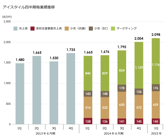 なかなか好調そうな1Q決算を発表したアイスタイル 昨日、アイスタイル2015年6月期第1四半期の決算が発表され、連結経常利益は前年同期比3.7倍の1.7億円になるなど好調そうです。ただ「一時的な売上増加要因」「前期発生したオフィス移転費用が今期は無い」などもあるそうです。とは言え、概ね好調なのは間違いないし、経常利益の進捗率は1Qで既に約70%もいってるので、この後結構攻めていけるんじゃないかなぁと思うわけです。今期から事業セグメントが一新され、マーケティング、小売(EC、店舗)、美容支援事業の3つに再定義されました。決算説明会資料には前期の分も組み替えて図になっているので、非常にわかりやすくて良いなーって思いました。以前アイスタイルを取り上げた時にはispot、ちぢまるなど美容支援事業の方に力入れていくのかな?と思ったのですが、その分野はビジネスモデル変更などもあり横ばい。そのかわりリアル店舗での売上が結構伸びてる。主軸のマーケティング事業は夏に子会社化したGLOSSYBOXが今後どうなっていくのか気になるとこ。【関連エントリー】・コスメ領域から拡大中のアイスタイルをちょっと調べてみた・「成功の陰には支援者がいる!」有名な5社における創業前後の支援エピソード http://takanoridayo.blog.shinobi.jp/Entry/315/なかなか好調そうな1Q決算を発表したアイスタイル