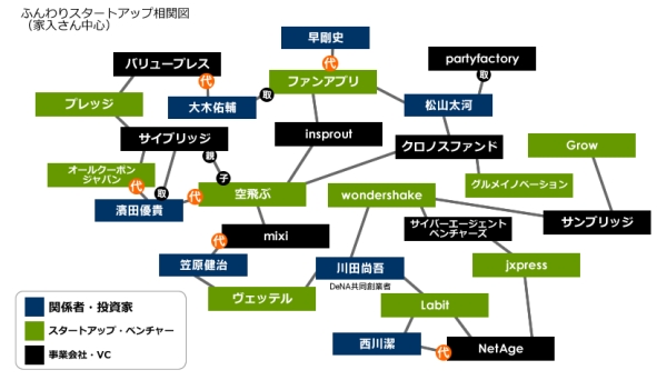 スタートアップ投資をふんわりと調べたお スタートアップ投資が昨年頭くらいから盛り上がっていますねー。サムライインキュベートさんとネットエイジさんが目立っているんですが、調べてみたらそれだけじゃなくてビックリしました。個人投資家なども活躍しててもうこんがらがってきたよー。【スタートアップVC】■Samurai Incubate Inc.http://www.samurai-incubate.asia/アクシヴドットコム(現voyage group)で創業期より参画して活躍されていた榊原健太郎さんが代表をつとめるスタートアップ専門のベンチャーキャピタル。とにかくアグレッシブで行動的で、その活躍は業界の注目。業界の人と話すと「いやー、しかし榊原さんは元気だよね」という話に必ずなるくらい。投資先も多く、ポートフォリオ管理が大変そう。Samurai Incubateさん主催のSVS(第3回)にパネリストとして参加した時に、他のステージでネットエイジ西川さんなどもいたのですが、壇上で「そんなに投資先あるの?凄いな」と感想をもらしてました。投資先は「一過性のものではなく、ビジネスモデル自体の新しさや継続性、そして経営者の人柄」を重視しているようで、第一号ファンドの出資先7社はほぼ全て増資や買収されたそうです。投資回収率も相当高いのが凄いところ。有名どころだと、KDDI傘下medibaに買収されたノボットさんなど。インキュベーション施設有り。■NetAgehttp://www.netage.co.jp/言わずと知れた「ビットバレー構想」で有名な西川潔さんが代表をつとめる伝説的キャピタル。アドバイザー陣も豪華です。前ネットエイジ(現ngi group)の一線級から退いた後、万を持して昨年頭くらいから再び表に出てきました。かつてmixiを育てたその眼力には定評があり、西川さん個人でも数多くの投資をしているようです。インキュベーション施設有り。投資先で有名なのは「pray for japan」や「すごい時間割」のLabitさん。■サイバーエージェント・ベンチャーズhttp://cyberagentventures.com/サイバーエージェントを支え続けたといわれるVC部門。積極的な投資で業界では有名。昨年8月にスタートアップ向けのファンドを組み、最近はスタートアップ企業への投資を積極的に行っているように見受けられる。インキュベーション施設有り。■その他CAグループのvoyage groupもスタートアップ向けのVCを昨年より始めています。オフィス内にインキュベーション施設も併設し、growさんなどが利用しているみたいです。またかつてはベトナム方面の投資や国内ソーシャルゲーム系企業(gumiや空飛ぶ等)のスタートアップに投資してたinsproutも見逃せない。かなりの投資回収率だと思われる。最近積極的なのはサイブリッジ。業界の有名人松山大河さんのクロノスファンドも高い投資実績を誇る。家入さんが立ち上げたスタートアップ向けのVC「partyfactory」の取締役にも名を連ねているのはビックリしました。ネットプライスも積極的なようです。【個人投資家】ペパボ創業者の家入さんの動きが相当派手で凄いなぁと。業界内でも「家入さんは凄い」と話題になっていました。『宅麺』のグルメイノベーションさん、オールクーポンジャパンさん、ファンアプリさん、wondershake Inc.さん、Labit Inc.など話題のスタートアップ企業に軒並み投資している。『美人時計』創業者の早剛史さんも数多くの人気銘柄に投資している。家入さん、早さん、松山さんの組が揃って投資している企業が多いきがします。仲が良いのかなぁ。DeNA創業者川田尚吾さんも数多くの有望スタートアップ企業に投資をしているみたいです。---------でもなんでスタートアップ投資が流行ってるのか?それはローリスクハイリターンが見込めるってのももちろんあるだろうけど、ベンチャーキャピタルや投資家が「次世代育成」に対して使命感を持ってやり始めたってのもあるのかな。一発狙いのとこも当然あるだろうけど。なので、スタートアップ企業さんはVCや投資家が何を考えているかをしっかり見極めた方がいいと思いますよー。しかし、上記VCや投資家さんは基本的に僕と同じ76世代もしくはその上の世代の方なわけで、スタートアップの若者(20歳前後の大学生から25歳くらいの人)達とコミュニケーションするってのは単純に凄いなぁって思う。若者の情熱と目線を合わせ、若者の甘さを寛容に受け止める力が必要だと思うのです。いやはや・・・。【おまけ】ふんわり相関図。 http://takanoridayo.blog.shinobi.jp/Entry/5/スタートアップ投資をふんわりと調べたお
